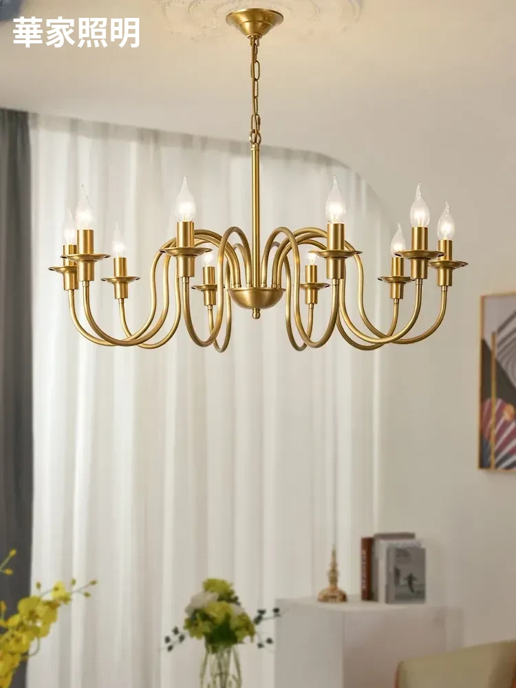 フランス風全銅シャンデリア - シンプルで高級感溢れるリビング・ダイニング照明。創造的なレトロデザインが魅力の書斎・寝室用アメリカンキャンドルライト。