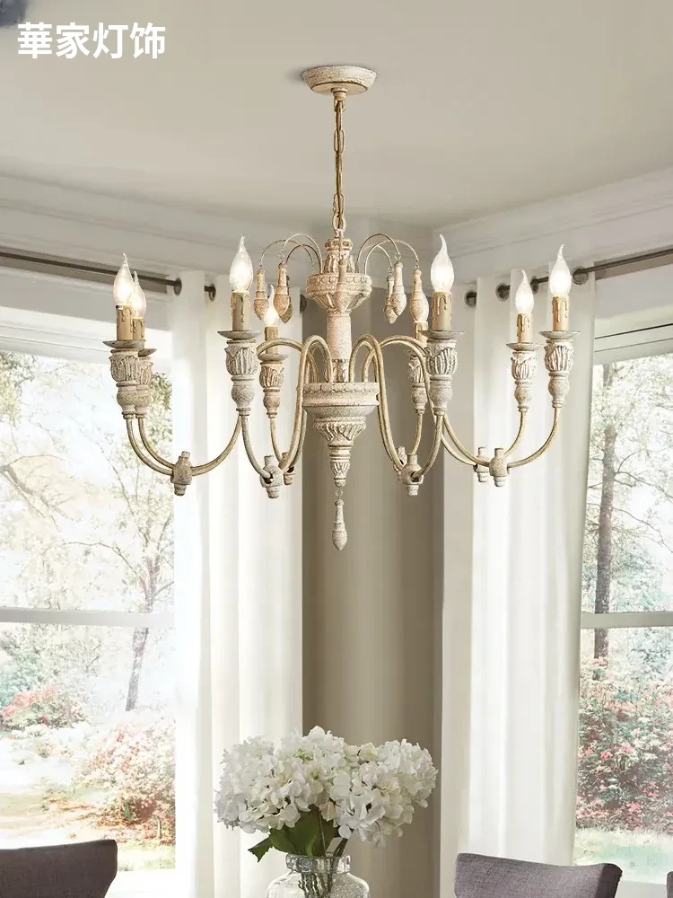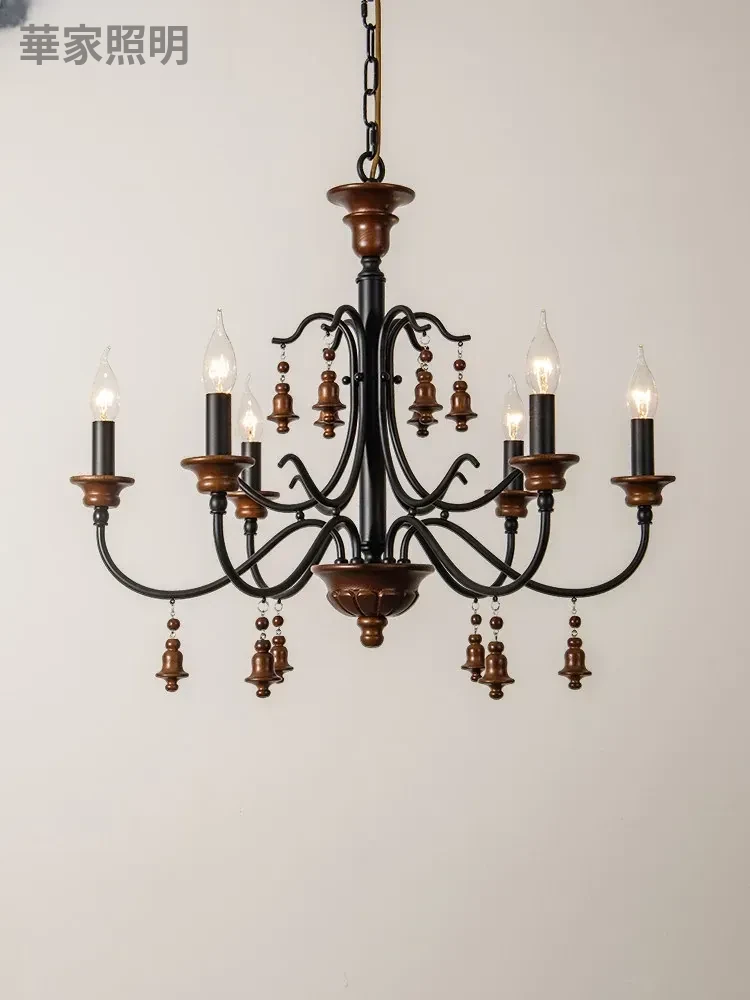 アメリカンスタイルのシャンデリア - レトロなフレンチカントリーデザイン、プリンセスルームや別荘、民宿に最適!おしゃれなキャンドルウッドライトで、リビングやダイニングを温かく彩ります。