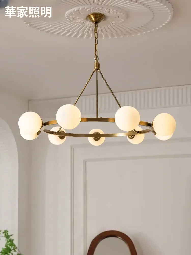 アメリカンスタイル全銅シャンデリア|ラグジュアリーな丸型デザイン|リビングやダイニングにぴったり|フレンチビンテージ&ミニマリストの魅力を兼ね備えたモダンな寝室ライト