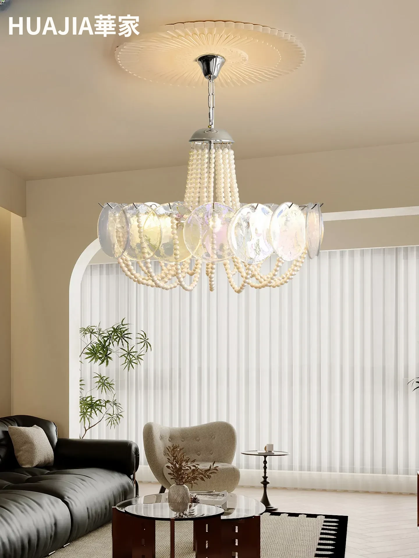 フレンチスタイルのシャンデリア|ラグジュアリーなリビングにぴったり!アートでおしゃれなシンプルデザイン|寝室やダイニングにも最適なパールガラス製シャンデリア。魅力的な空間を演出します!