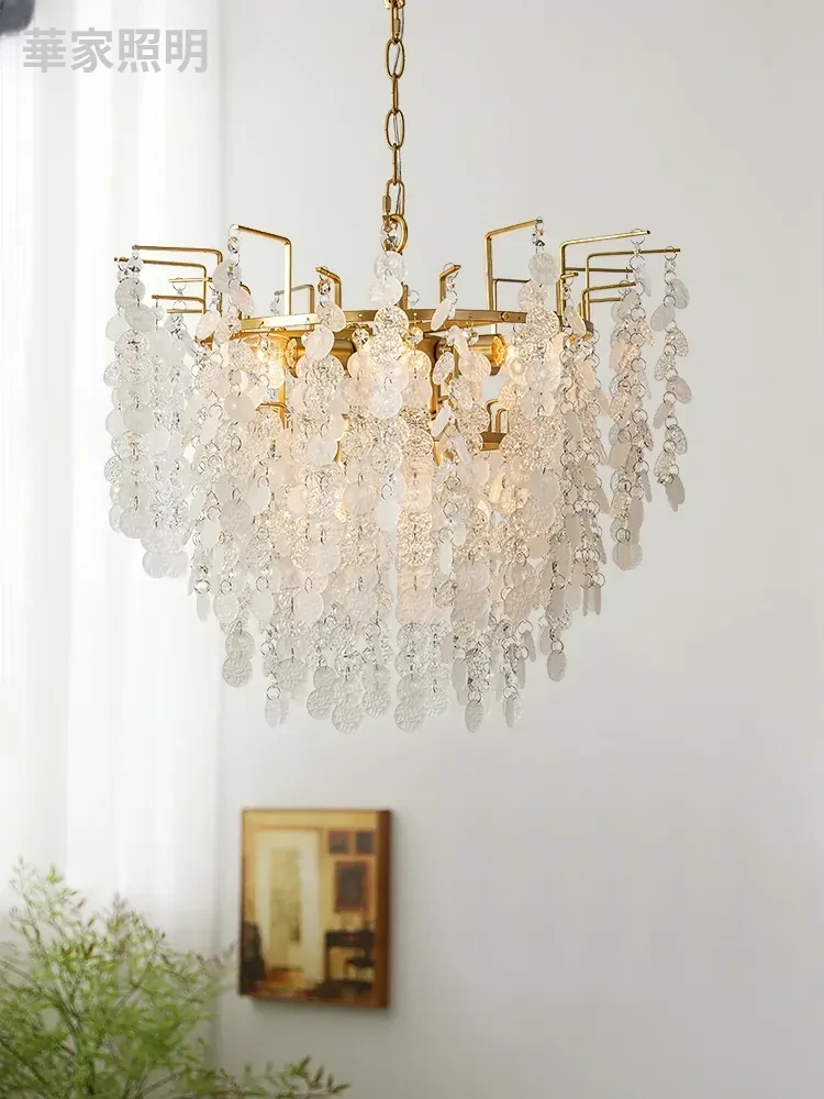 フレンチクリスタルシャンデリア|リビング&ダイニングにぴったり!アメリカンヴィンテージスタイルの純銅製、ラグジュアリーなデザイン。星空のような美しい光で、寝室を特別な空間に演出します。