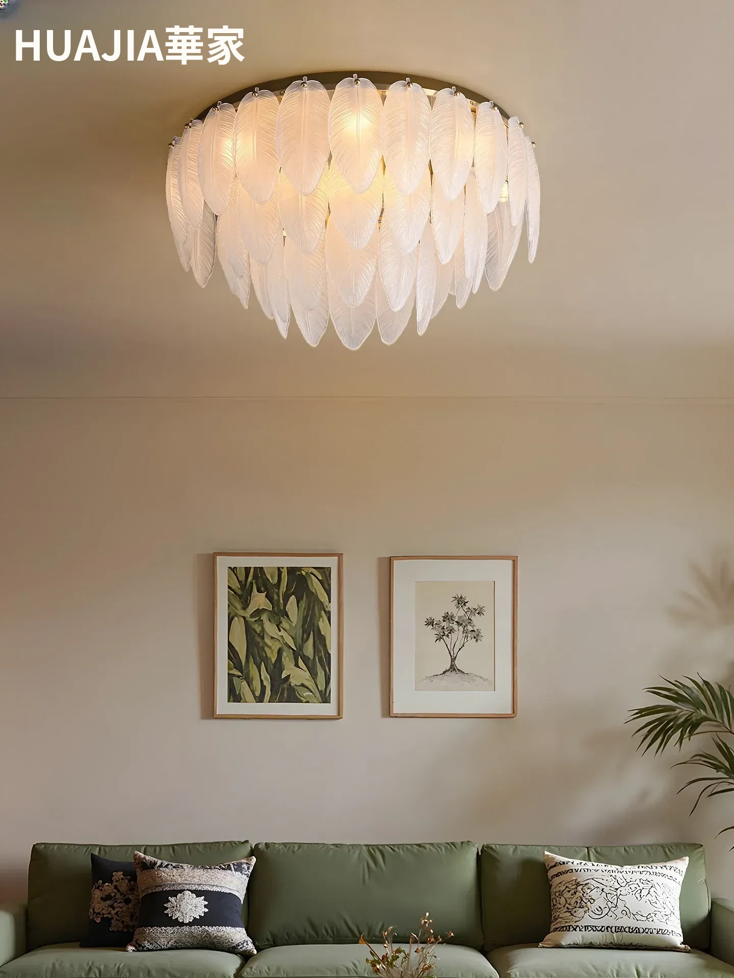 フランス風ラグジュアリー羽毛シーリングライト – 寝室や書斎、ダイニングに最適な全銅製の雰囲気満点のガラスシーリング照明!おしゃれで上品な空間を演出します。