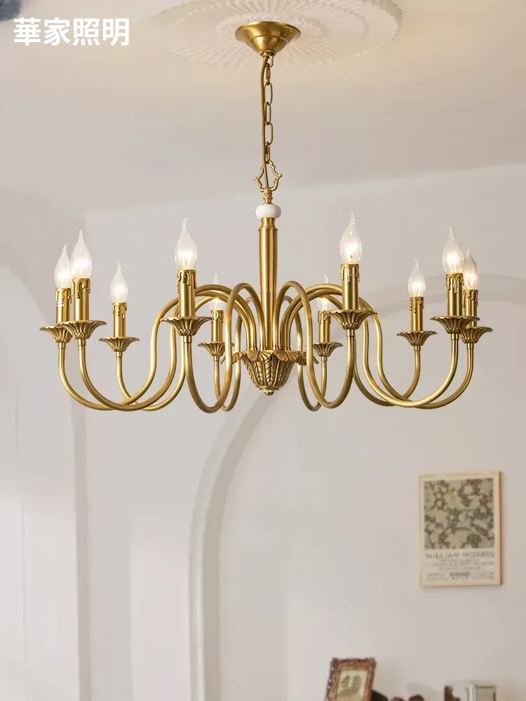 アメリカンレトロ全銅シャンデリア - リビング、ダイニング、ベッドルーム、書斎にぴったりのフレンチヴィンテージデザイン。軽やかなラグジュアリーで、豪華な別荘に最適なキャンドルライト!おしゃれな空間を演出します。