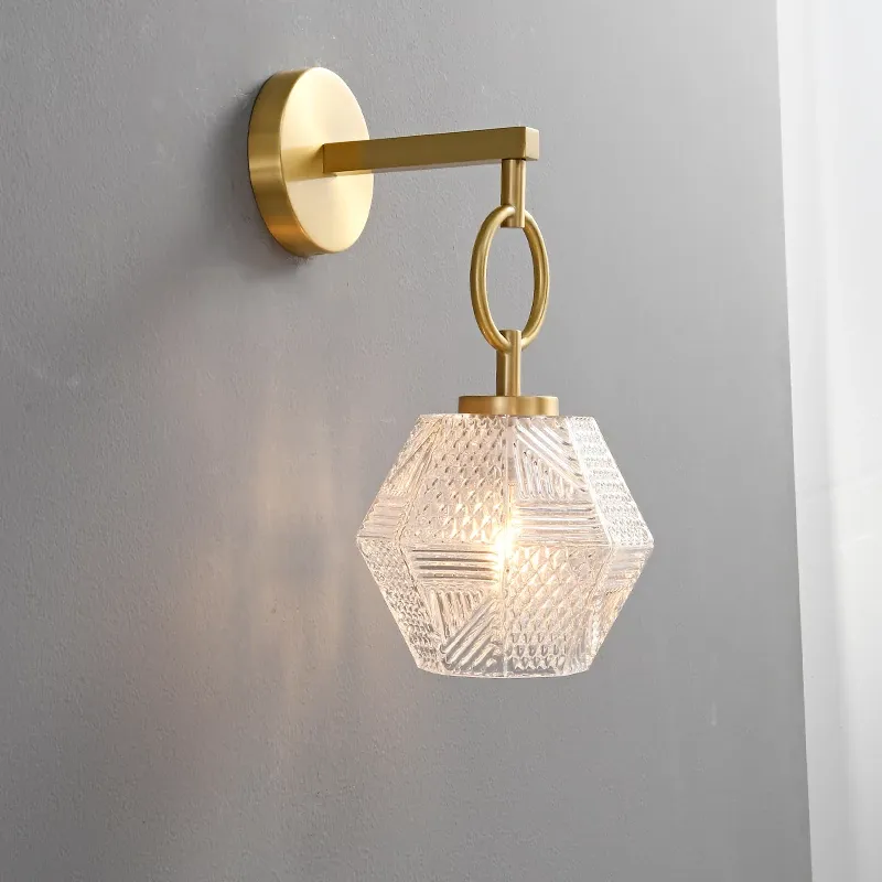 フランス風の壁灯 中古風寝室用ベッドサイドランプ アメリカンレトロ 全銅製 廊下・通路用ガラス装飾壁灯 - おしゃれで温かみのある光があなたの空間を演出します!