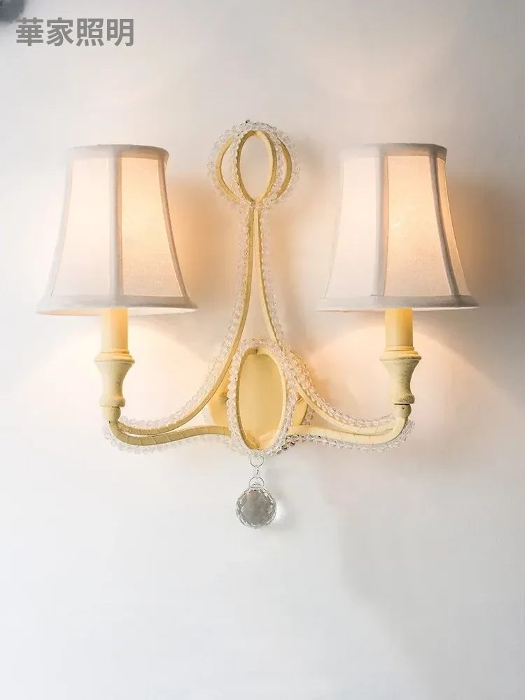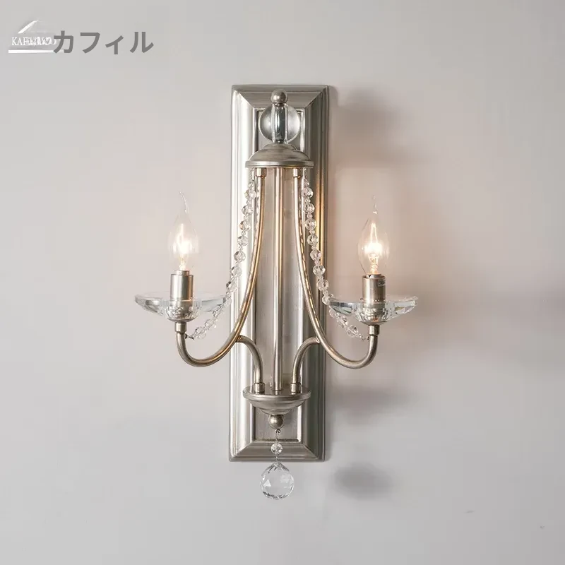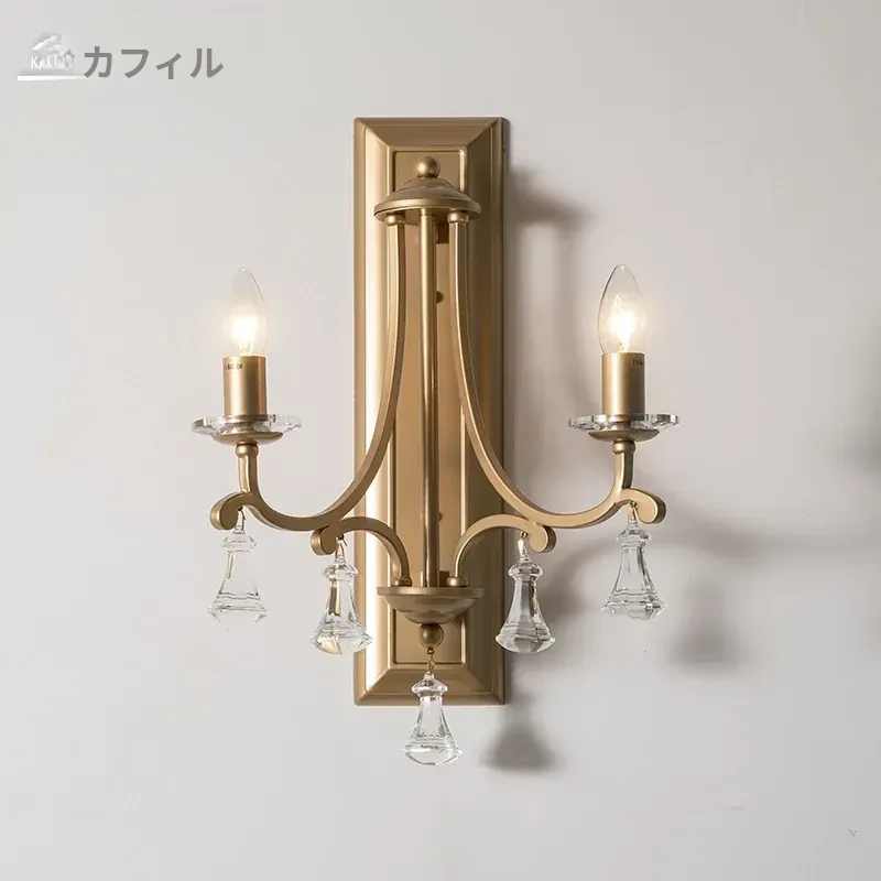アメリカンカントリースタイルのヴィンテージクリスタルウォールランプ|ダブルヘッドデザインで、寝室や廊下、リビングに最適なエレガントなベッドサイドランプ|温かみのある光でおしゃれな空間を演出!