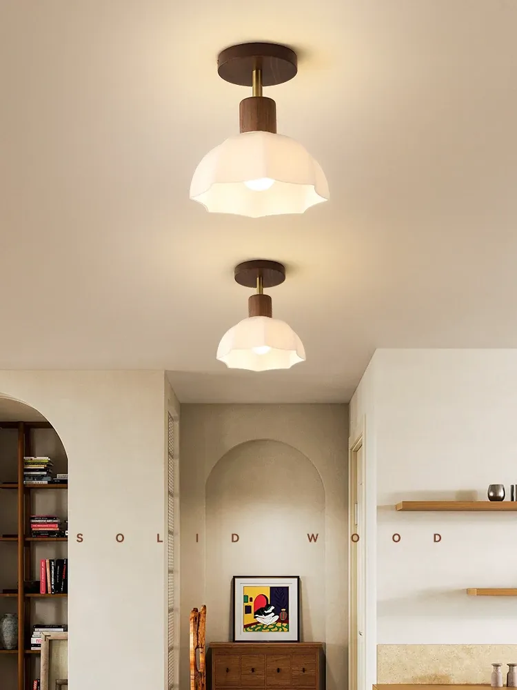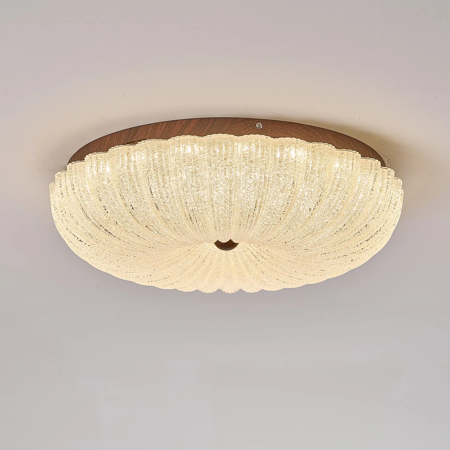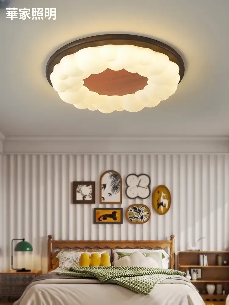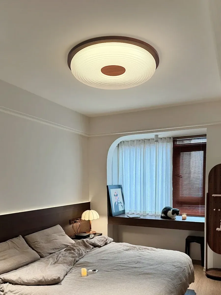 フレンチヴィンテージスタイルの丸型天井照明、ウォールナット木目の高級感漂うデザイン!2025年新作、書斎や寝室にぴったりの上質な天井灯具。