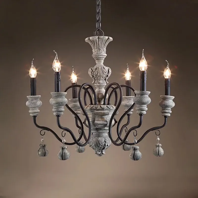 アメリカンレトロな木製シャンデリア|フレンチカントリー風リビング&ダイニング用|おしゃれな二重階段バー用キャンドルライト|心温まる寝室のインテリアに最適!