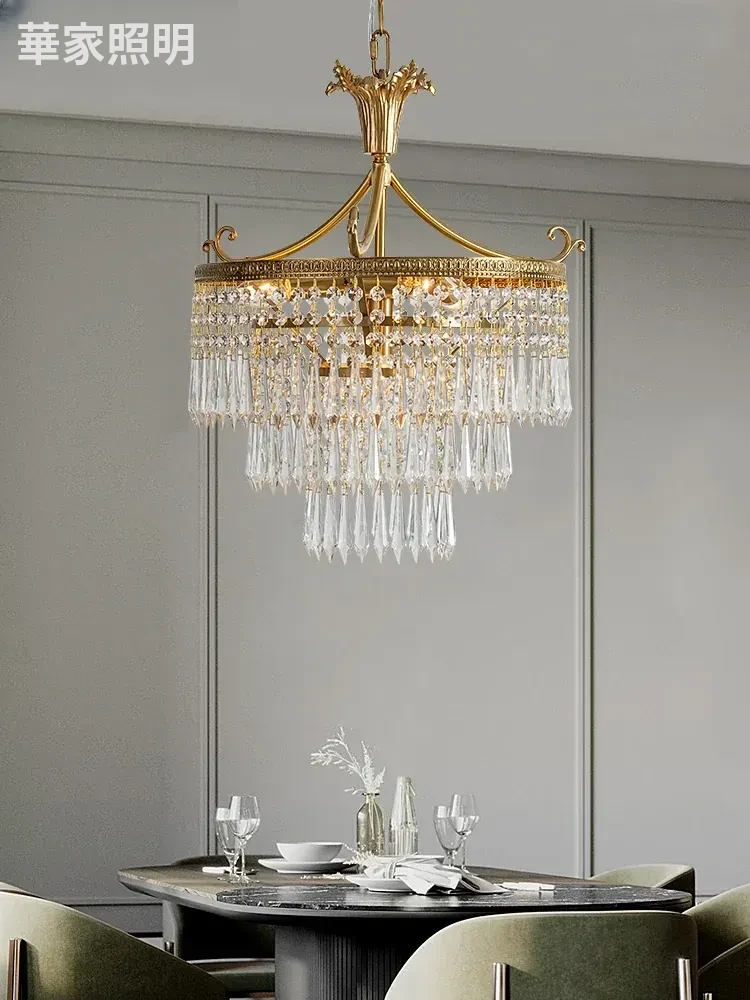 アメリカンスタイルのシャンデリア|リビング&ダイニングにぴったり!ラグジュアリーな全銅製フレンチクリスタルランプ|現代的で創造的な個性派アート寝室照明!