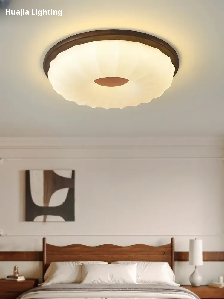 Vintage Ceiling Light for Bedroom - American Retro Walnut Wood Design, Perfect for Guest Rooms and Dining Areas, 2024 Edition - Solid Wood French Style Lighting