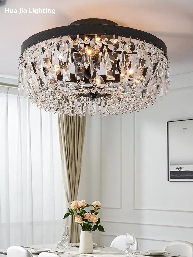 American Crystal Ceiling Light - French Vintage Black Pendant for Bedroom, Balcony, Hallway, Entryway, Closet, and Study Room Decor. Illuminate your space with style and elegance!