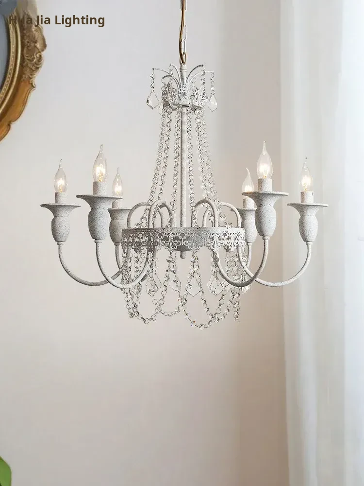 French Chandelier for Master Bedroom - Vintage American Style White Crystal Dining Light Fixture, Creamy Aesthetic Ideal for Airbnb and Princess-Themed Rooms