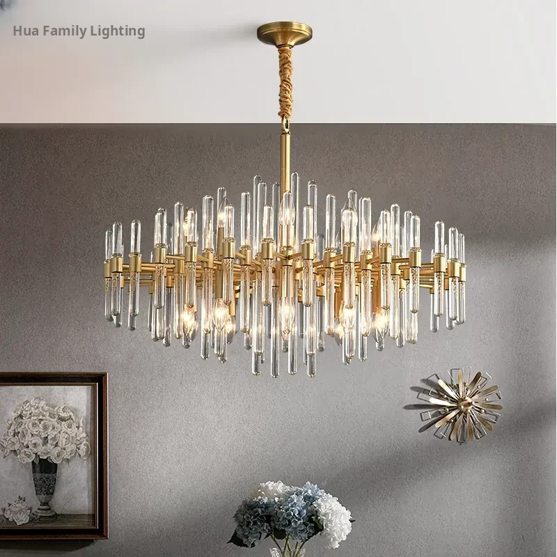 All-Copper Post-Modern Luxury Chandelier - Nordic Crystal Living Room Light, Elegant and Sophisticated, Perfect for Bedrooms, Sample Homes, and Dining Areas.