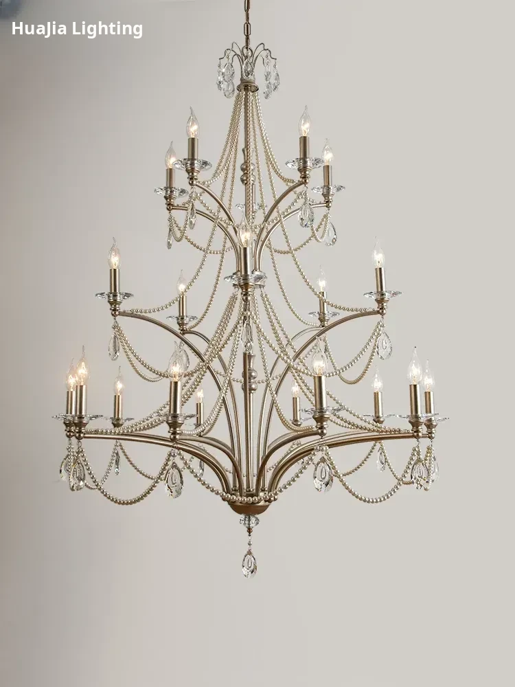 Elegant American Style Chandelier for Loft Apartments - Stunning French Design Lighting for Double-Height Living Rooms and Grand Staircases, Perfect for Villas and Modern Homes!