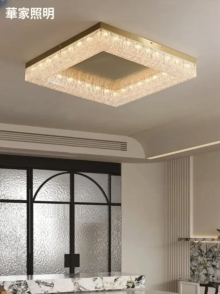 高級感溢れる正方形シーリングライト|全銅製アメリカン&フレンチスタイル|シンプルでエレガントなLEDリビング・ダイニング・ベッドルーム用メインライト