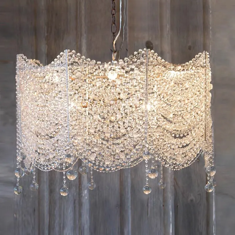 フレンチシャンデリア リビング・ダイニングルーム用 アメリカンビンテージ タッセルクリスタルライト 寝室にぴったりのラグジュアリー感あふれる 民宿スタイルシャンデリア