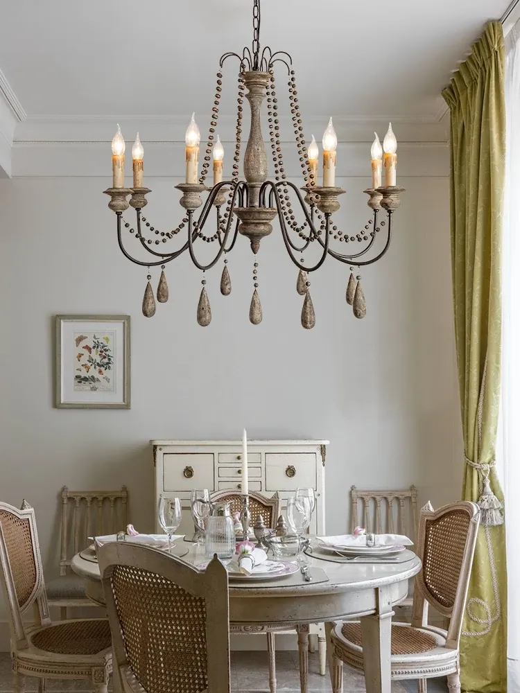 アメリカンカントリースタイルのレトロシャンデリア - 木製のヴィラ照明、フレンチアンティーク風の寝室や民宿にぴったりな田園灯具です。おしゃれな空間を演出し、心地よいひとときを提供します。