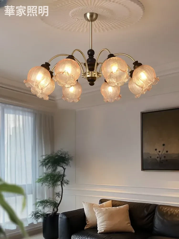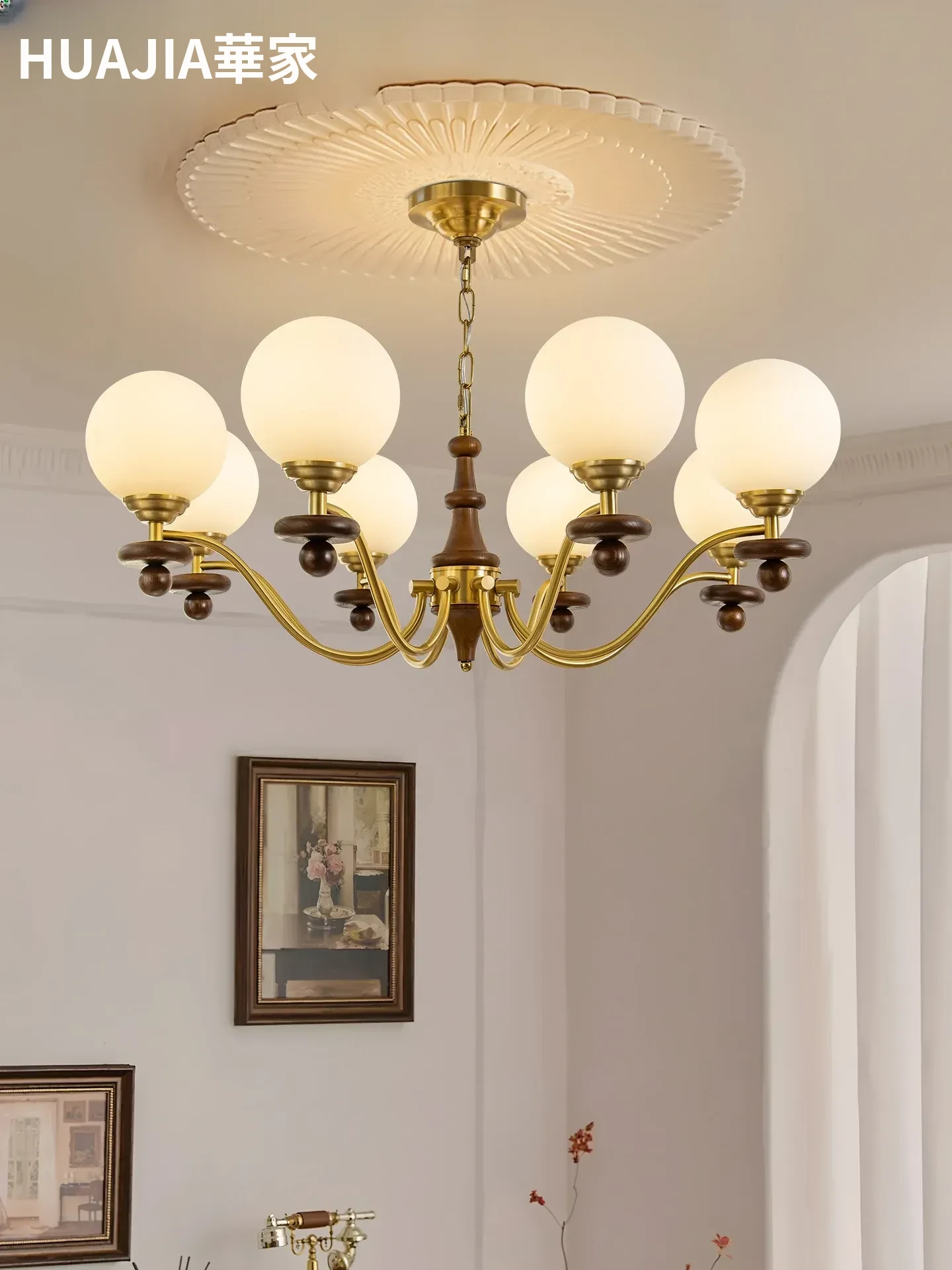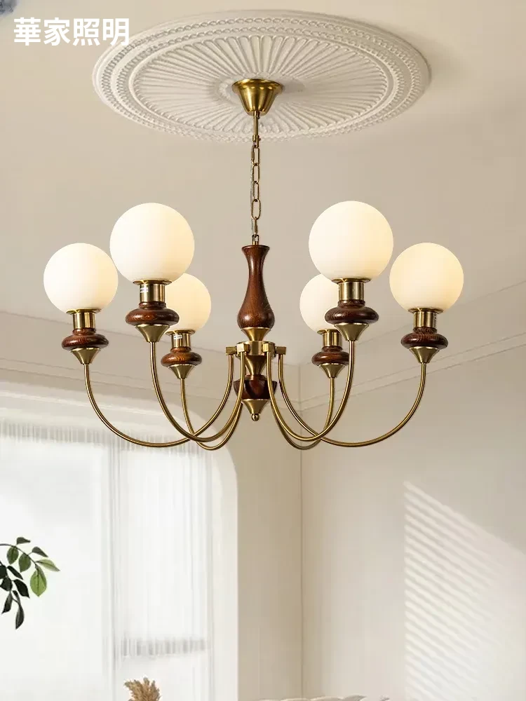 フランス風アンティークシャンデリア - リビングルーム、ダイニング、寝室にぴったりなアメリカンレトロなウォールナット材使用のバウハウスデザイン。ガラスの美しさを引き立て、空間を華やかに彩ります。