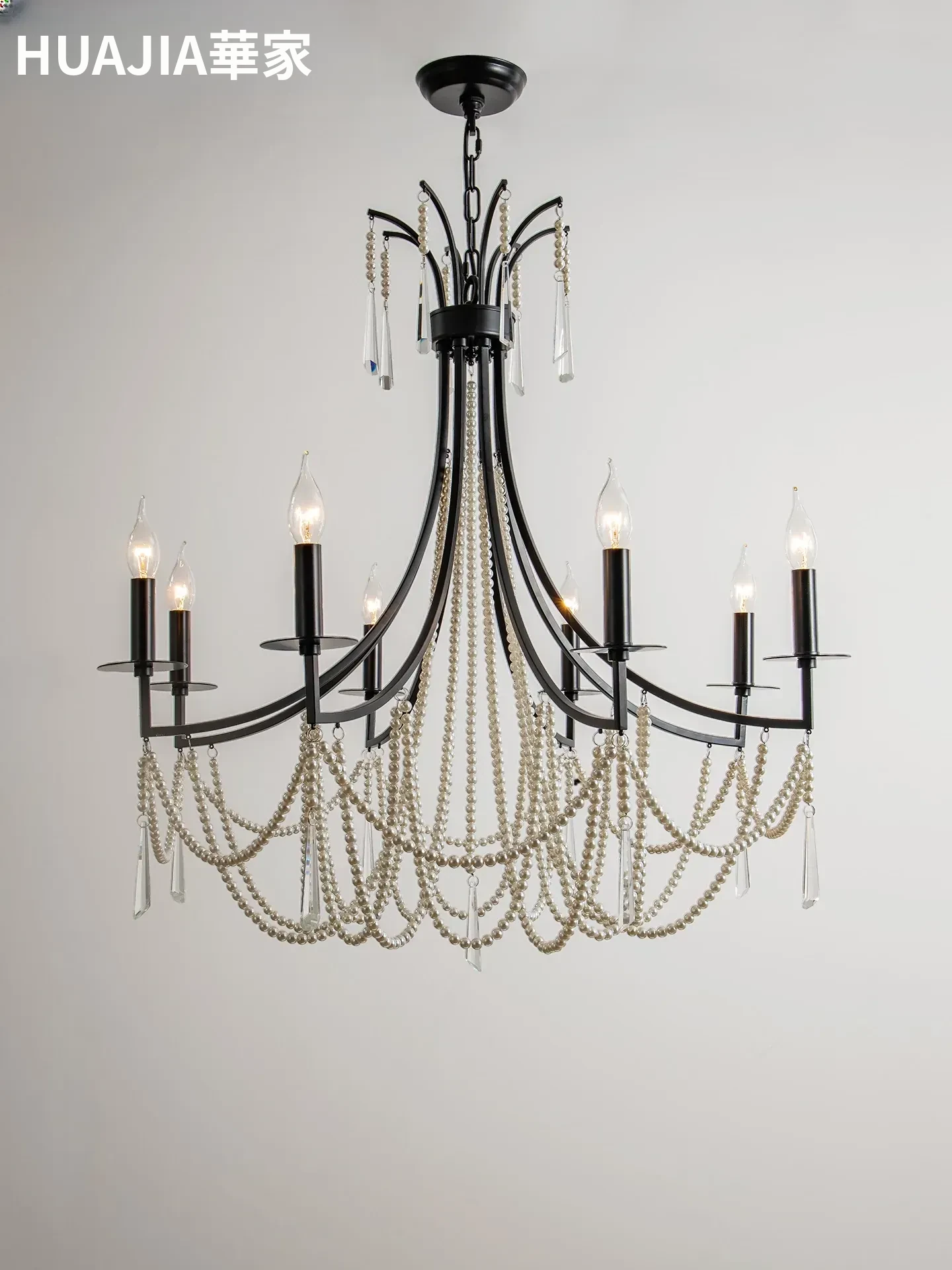 フレンチスタイルのシャンデリア、リビングやダイニングにぴったり!アメリカンヴィンテージのシンプルなデザイン、黒色アート、流れるようなタッセル、豪華なパールとクリスタルのキャンドルライトで、寝室を華やかに演出します。