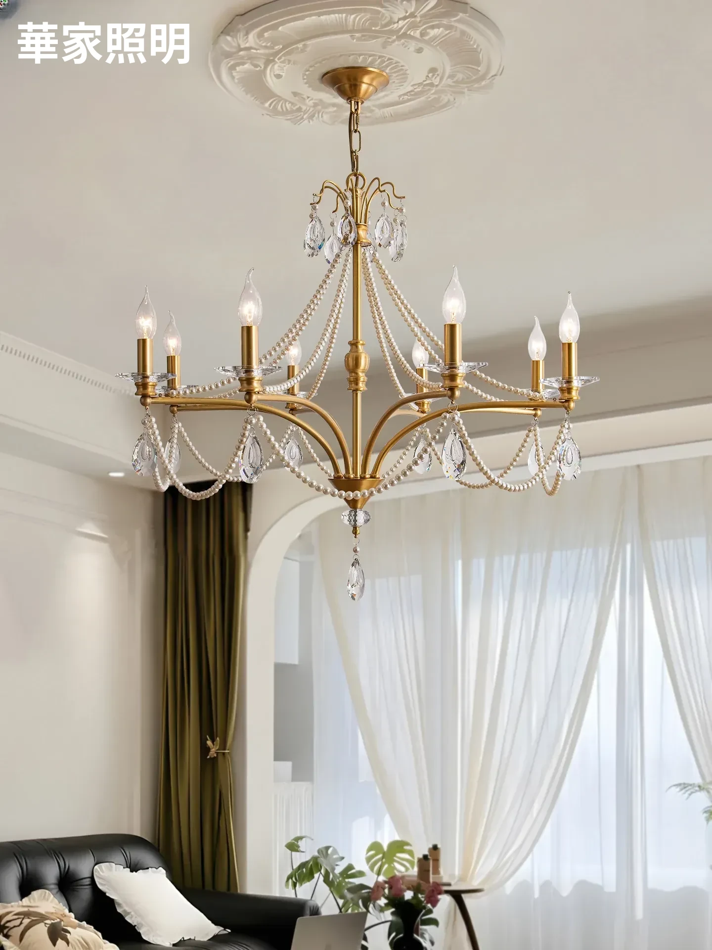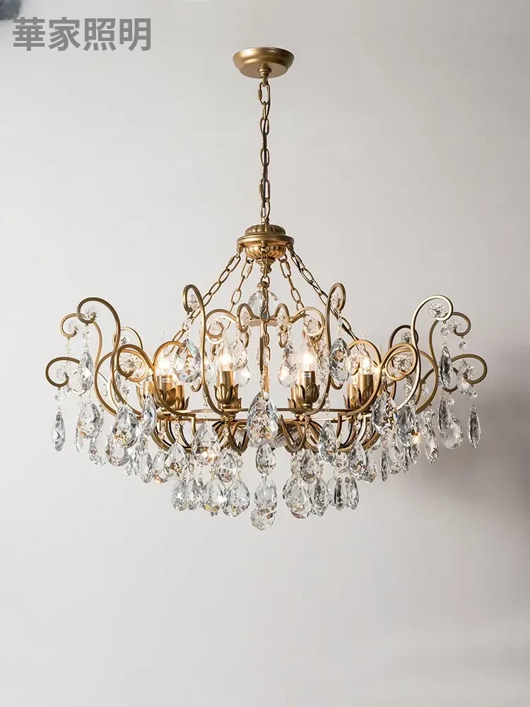 フレンチヴィンテージスタイルのシャンデリア、寝室や書斎にぴったりなアメリカンレトロクリスタルシャンデリア、全銅製のレストラン用キャンドルライトで、優雅な空間を演出します。