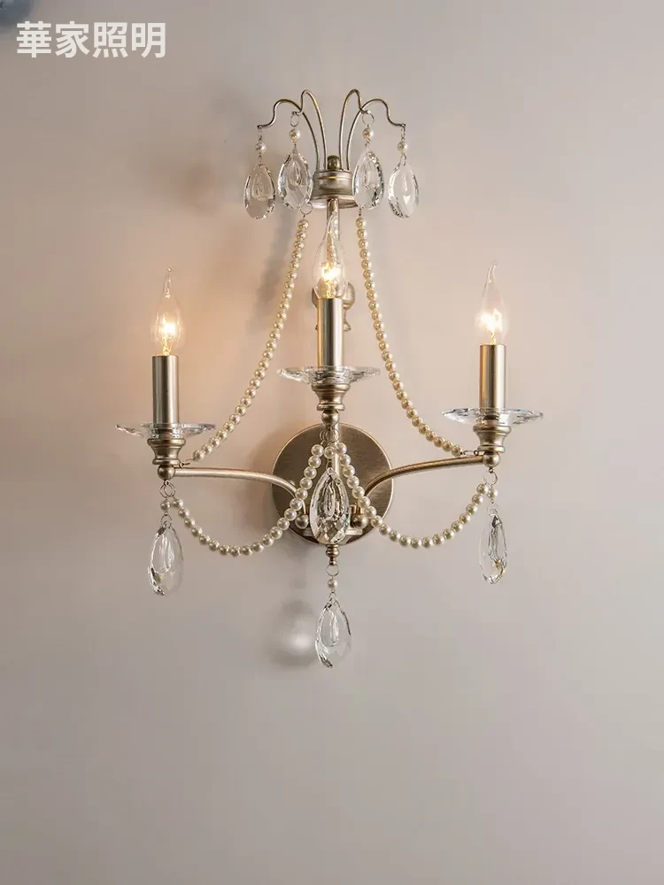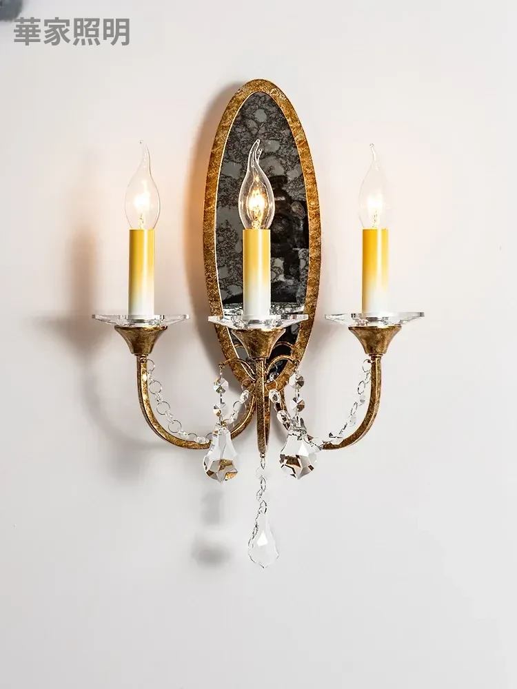 アメリカンスタイルの壁掛けランプ - レトロフレンチクリスタルのベッドサイドランプ、欧風の廊下灯、アンティークミラーランプ、階段用照明でおしゃれな空間を演出!