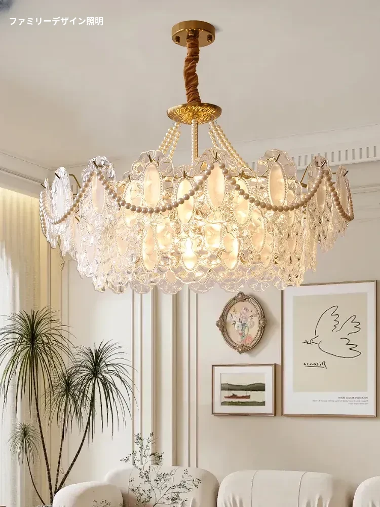 フレンチヴィンテージ風クリスタルシャンデリア - リビングルームにぴったりのアメリカンシンプルスタイル!美しいパールクリスタルで、寝室やダイニングルームにも最適。優雅な雰囲気を演出し、特別な空間を作り出します。