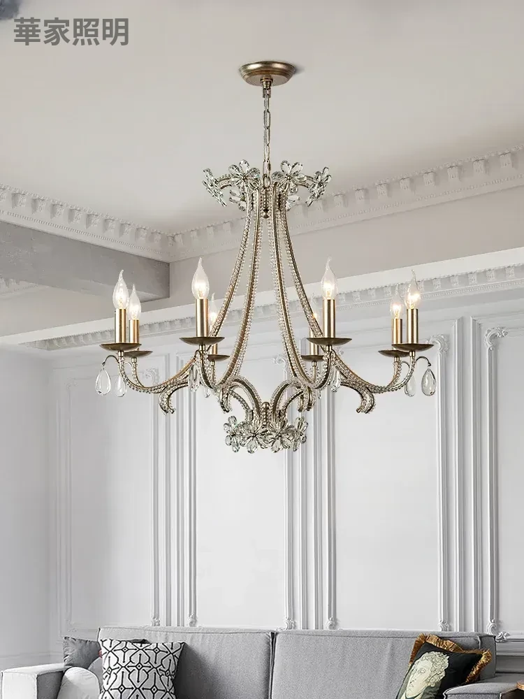 フレンチスタイルのシンプルラグジュアリーシルバークリスタルシャンデリア - アメリカンヴィンテージのベッドルームやダイニングルームにぴったり!クリスタルの輝きが書斎を華やかに演出します。