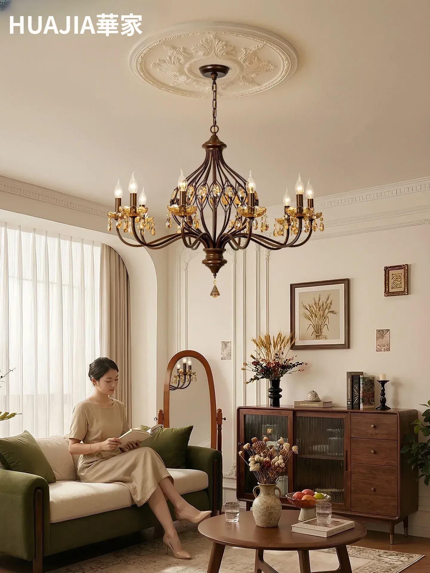 フレンチアンティークスタイルのシャンデリア、琥珀色のクリスタルが輝くダイニング用吊り灯、アメリカンヴィンテージのウォールナット色ベッドルーム用メインランプ。優雅な雰囲気を演出し、特別な空間を演出します。