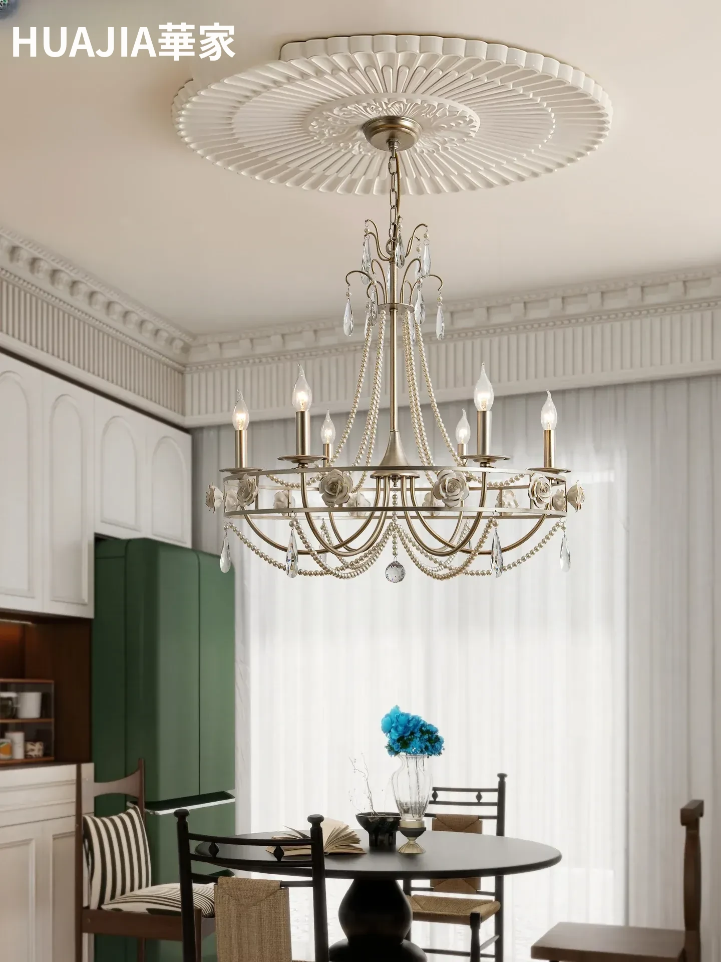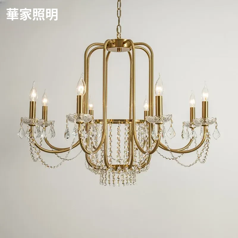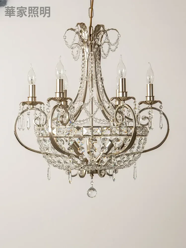 高級感溢れるフレンチシャンデリア - リビングやダイニングに最適なヴィンテージアメリカンスタイルの別荘用クリスタルキャンドルライト・階段用照明。優雅な雰囲気を演出し、空間を華やかに彩ります。