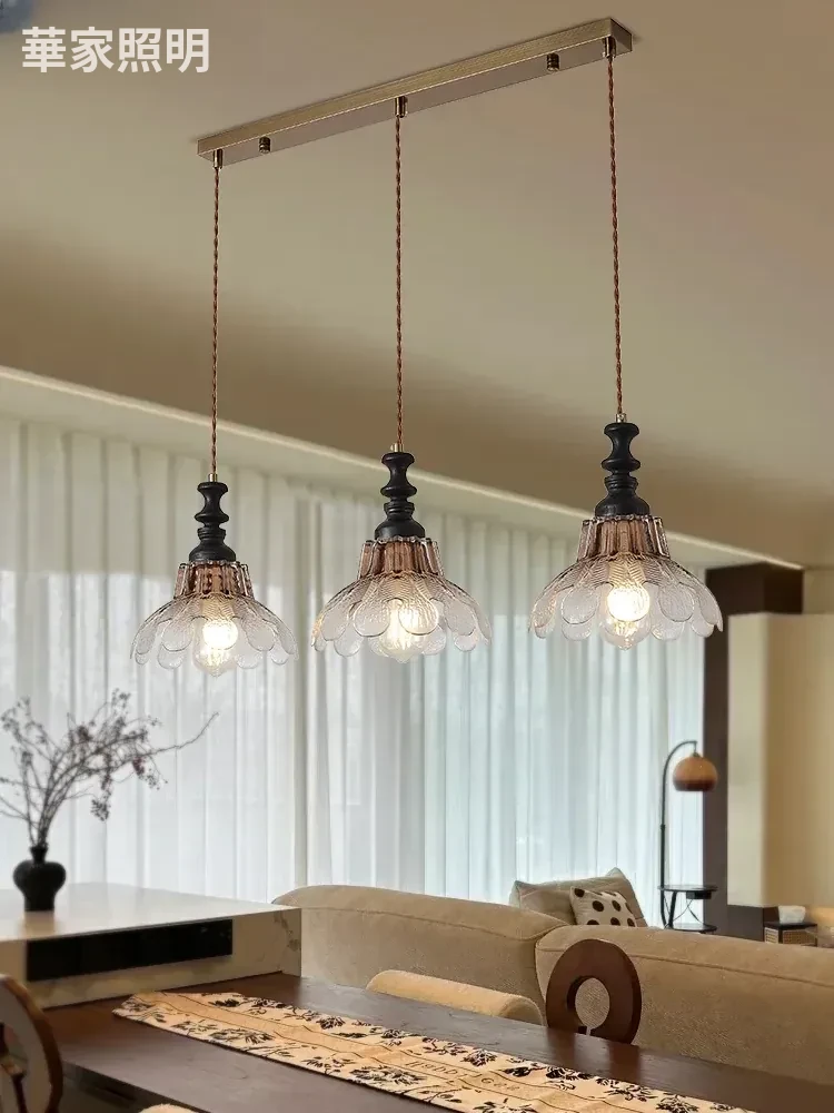 フレンチヴィンテージスタイルのレストラン用シャンデリア、アメリカンレトロのシンプルなウォールナット製ロングテーブル&バー、エレガントなガラスシェード付き。おしゃれで心地よい空間を演出します!