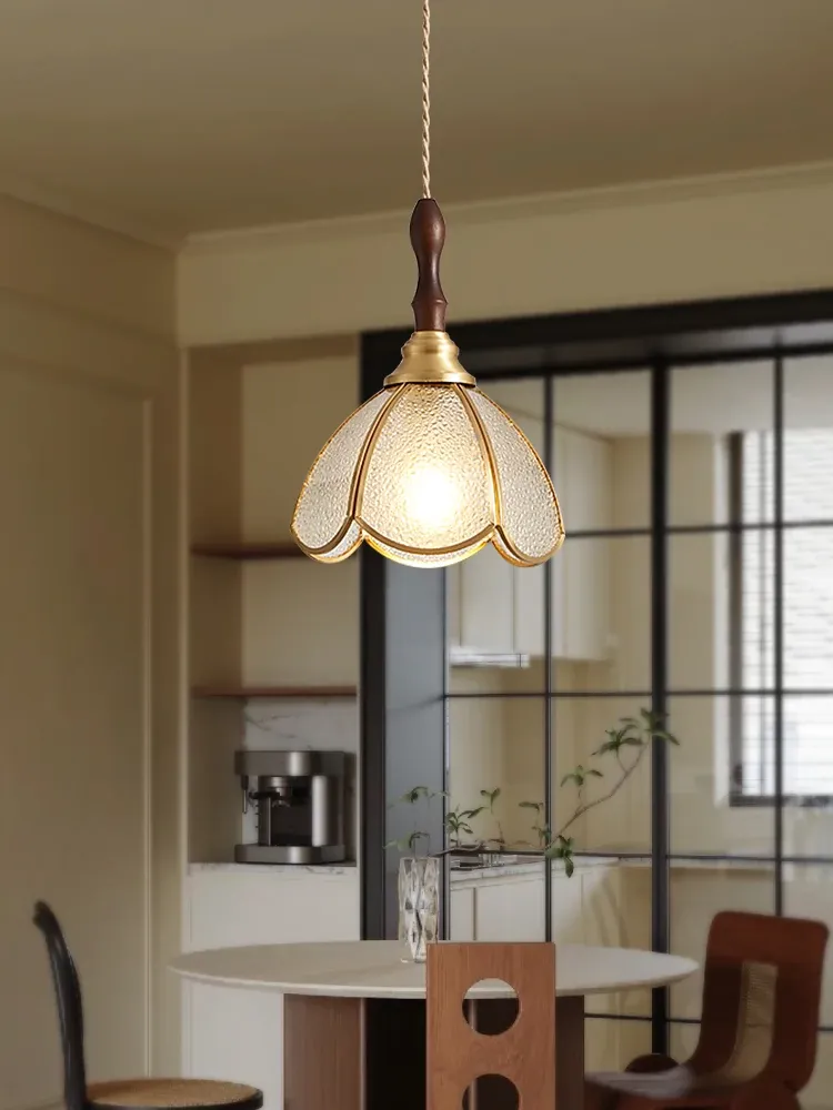 フランス風ヴィンテージレストラン用吊り灯!アメリカンレトロな無垢材を使用した、寝室やベッドサイドにぴったりな小型吊り灯。おしゃれなガラスデザインのダイニングやバーに最適な照明器具です。