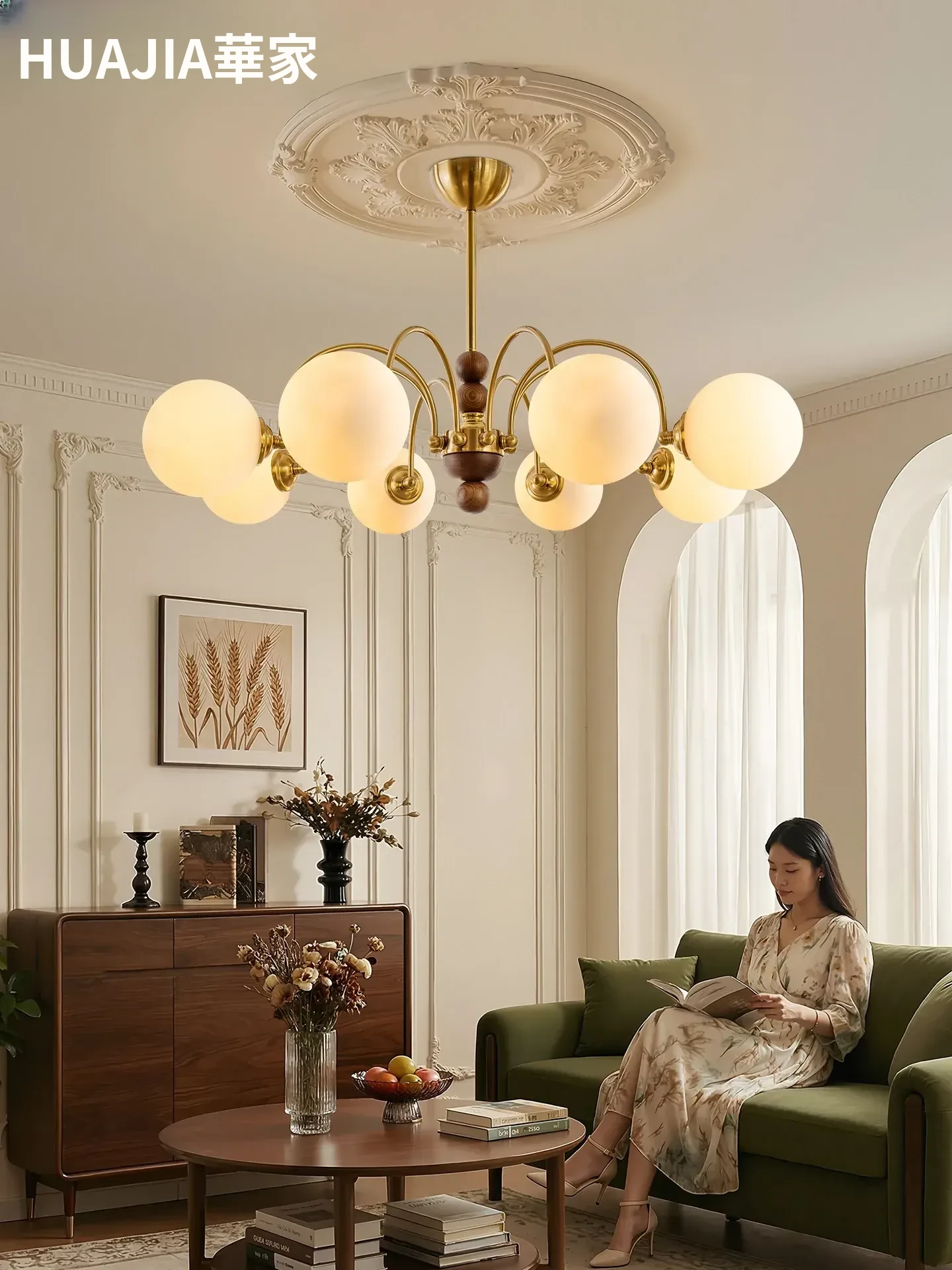フランス風ヴィンテージリビングダイニング用マジックビーンズクリエイティブシャンデリア、アメリカンウォールナット製、高級感あふれるエレガントなデザイン、寝室やダイニングに最適な照明器具