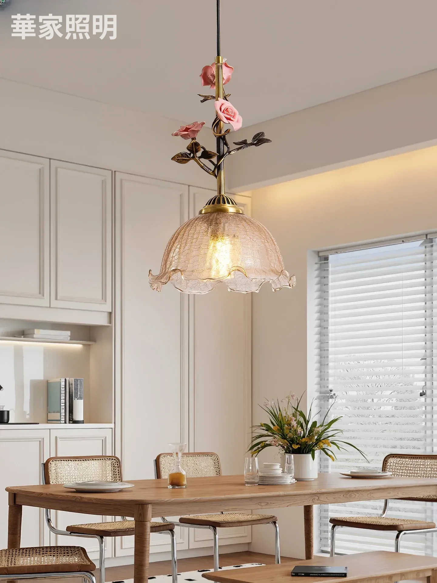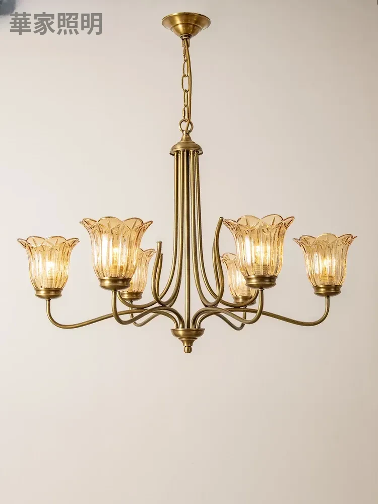 アメリカンスタイル全銅シャンデリア - レトロな別荘やメゾネットにぴったり!リビングやダイニングに華やかな光を添えるフレンチガラスの寝室用照明。魅力的な雰囲気を演出し、心地よい空間をお楽しみください。