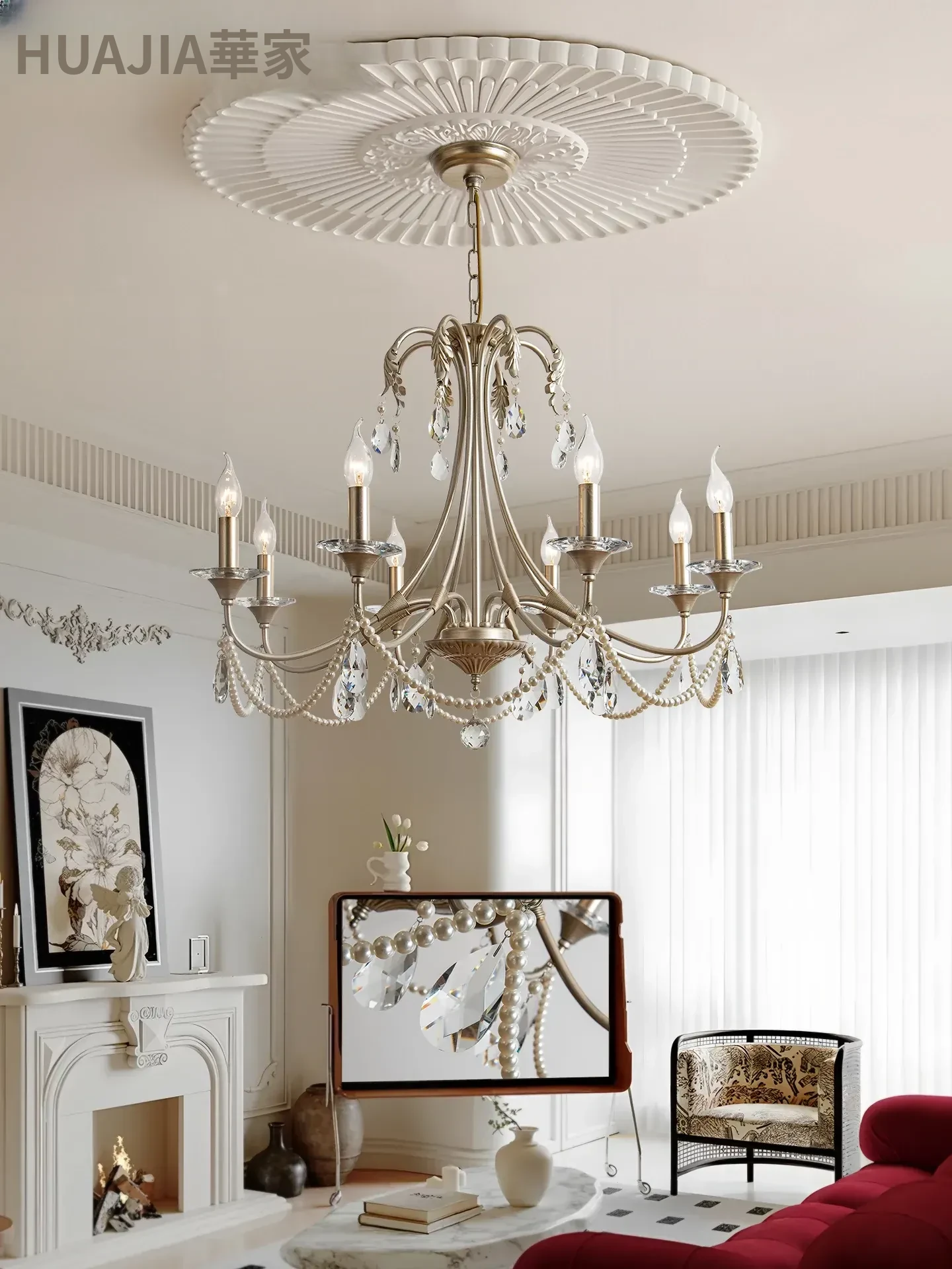 アメリカンスタイルのクリスタルシャンデリア|フレンチラグジュアリーの中世風デザイン|ヴィラのリビングや主寝室にぴったり!洗練されたレストラン照明にも最適なクリエイティブな照明器具です。
