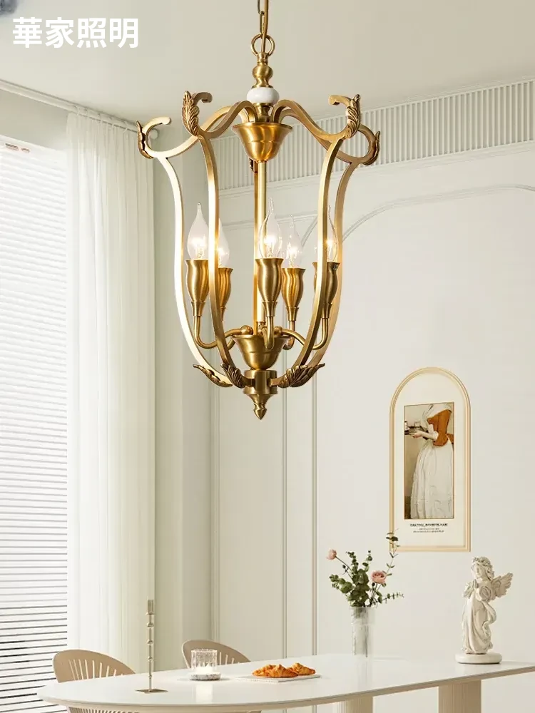 アメリカンスタイル全銅シャンデリア フレンチヴィンテージダイニングライト シンプルなベッドルーム・廊下・玄関用照明 入り口ホールライトで、おしゃれな空間を演出!