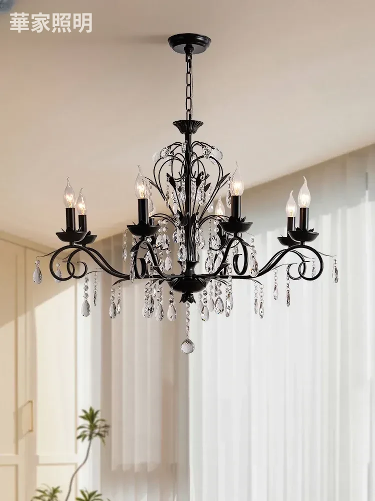 フランス製クリスタルリビングルームシャンデリア|アメリカンヴィンテージスタイルのシンプルな寝室用シャンデリア|スタイリッシュなブラッククリスタルダイニングシャンデリアで、空間を華やかに演出!