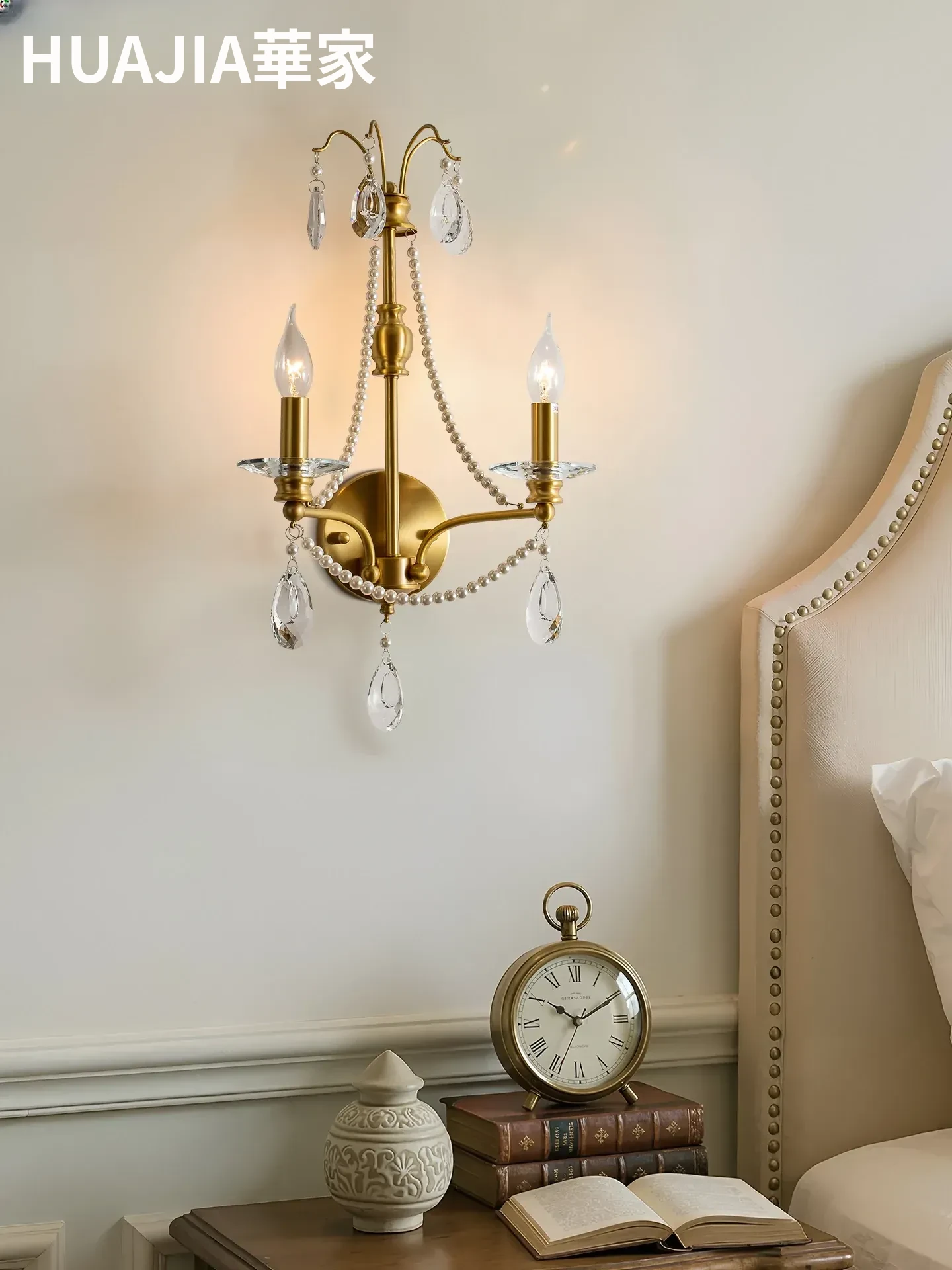 フランス風全銅レトロクリエイティブアート壁灯 - 寝室やベッドサイドにぴったり!別荘や廊下、階段に最適な雰囲気を演出する照明。おしゃれで温かみのある空間を作り出します。
