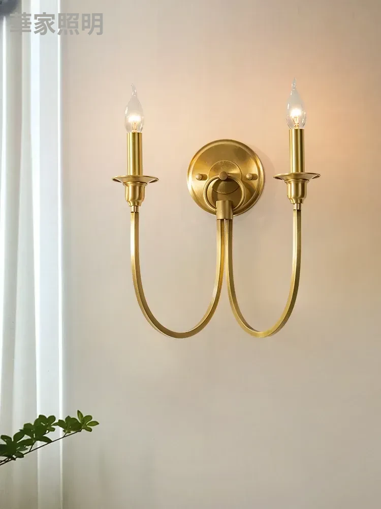 アメリカンレトロ全銅壁灯キャンドルスタイル フレンチミニマリストベッドサイドミラーライト 廊下や背景壁に最適な美しい照明