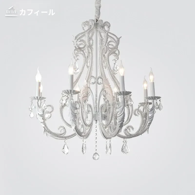 アメリカンカントリースタイル シャンデリア - 鉄製フレンチホワイト モダン デザイン!ダイニングルームやリビング、子供部屋、寝室に最適なクリスタルライト。シンプルでおしゃれな空間を演出します!