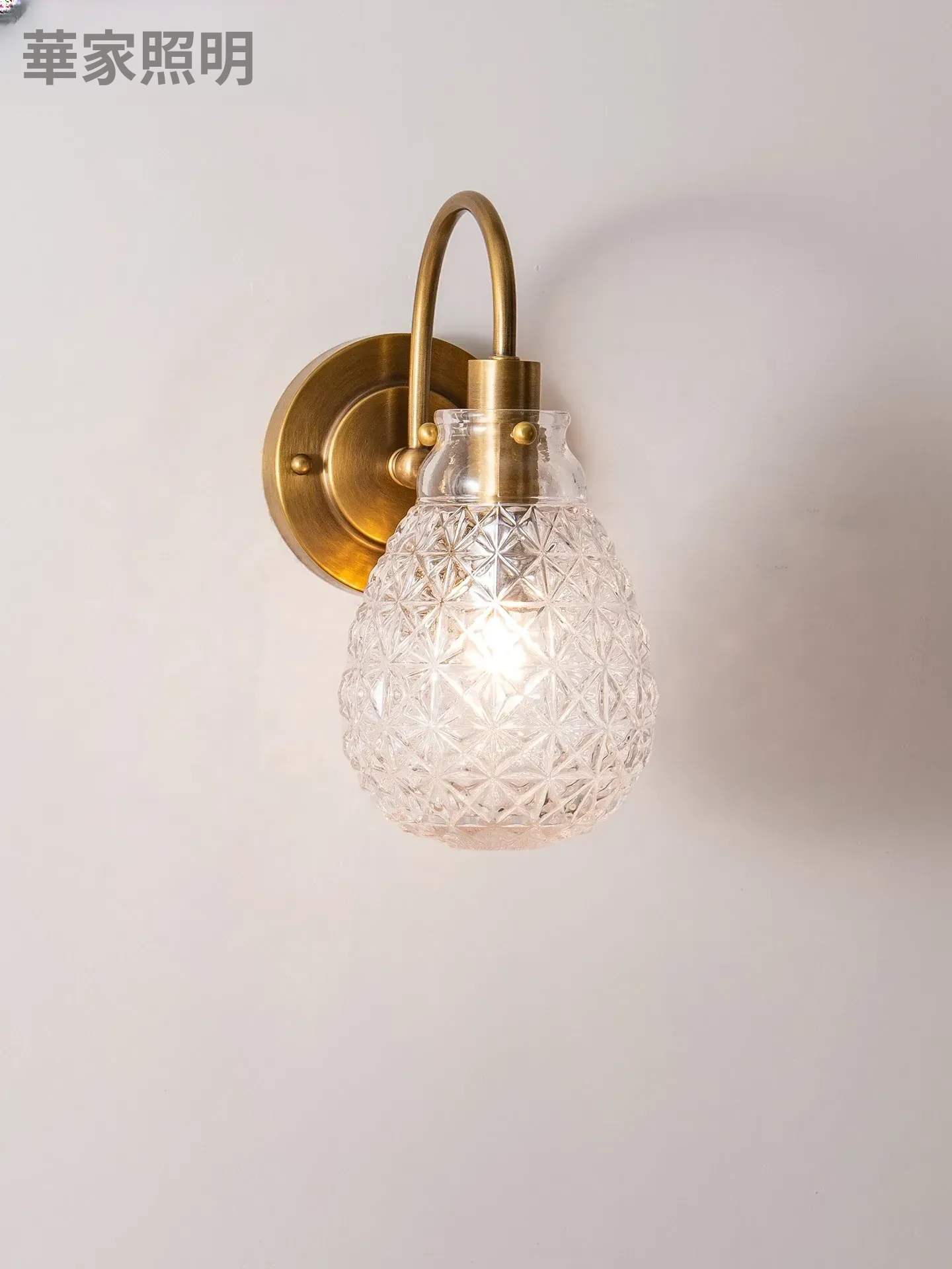 フランス風アンティークスタイルのリビングルーム用背景壁灯!アメリカン全銅製の廊下・通路用ウォールライト、寝室のベッドサイドにもぴったりなガラスウォールランプ。洗練されたデザインでお部屋を華やかに演出します!