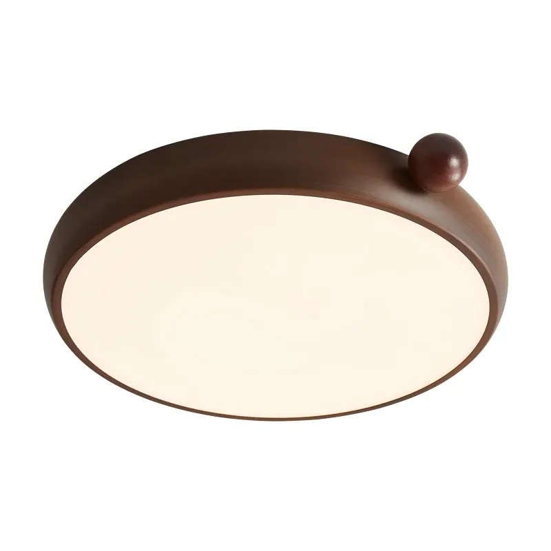 French Vintage Style Ceiling Light - American Retro Walnut Color LED Ceiling Fixture for Bedroom - Eye-Caring Design for a Cozy Atmosphere