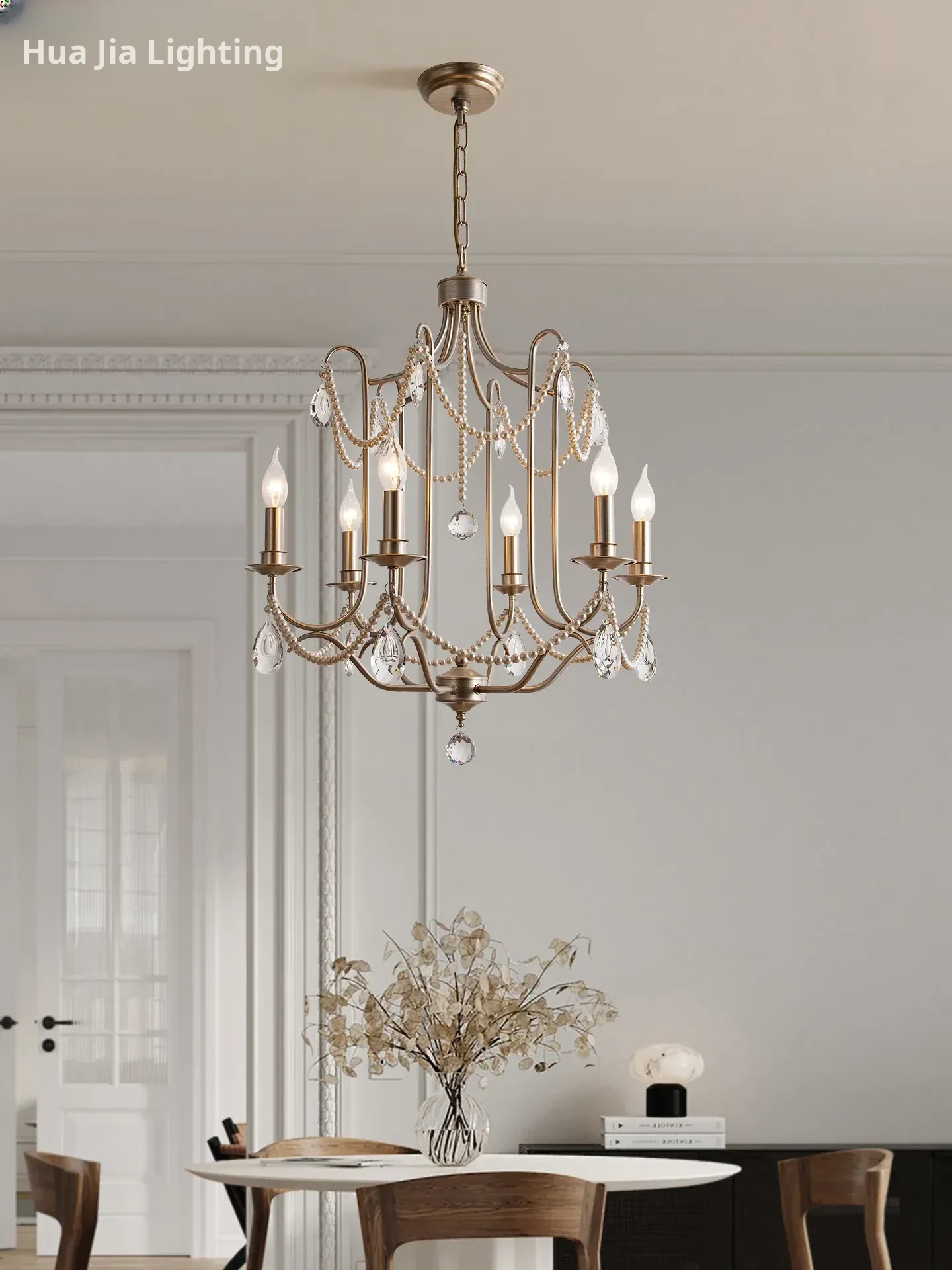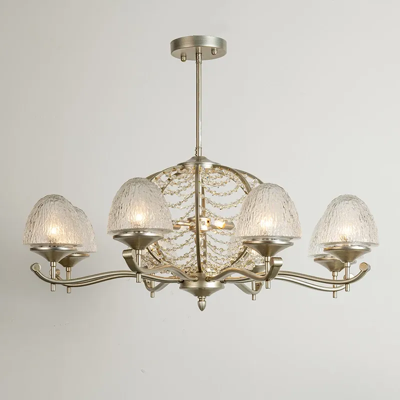 Elegant French Crystal Chandelier - Vintage American Style Silver Pendant Light for Luxurious Villas, Bedrooms, and Dining Rooms - Exquisite Pearl Crystal Illumination