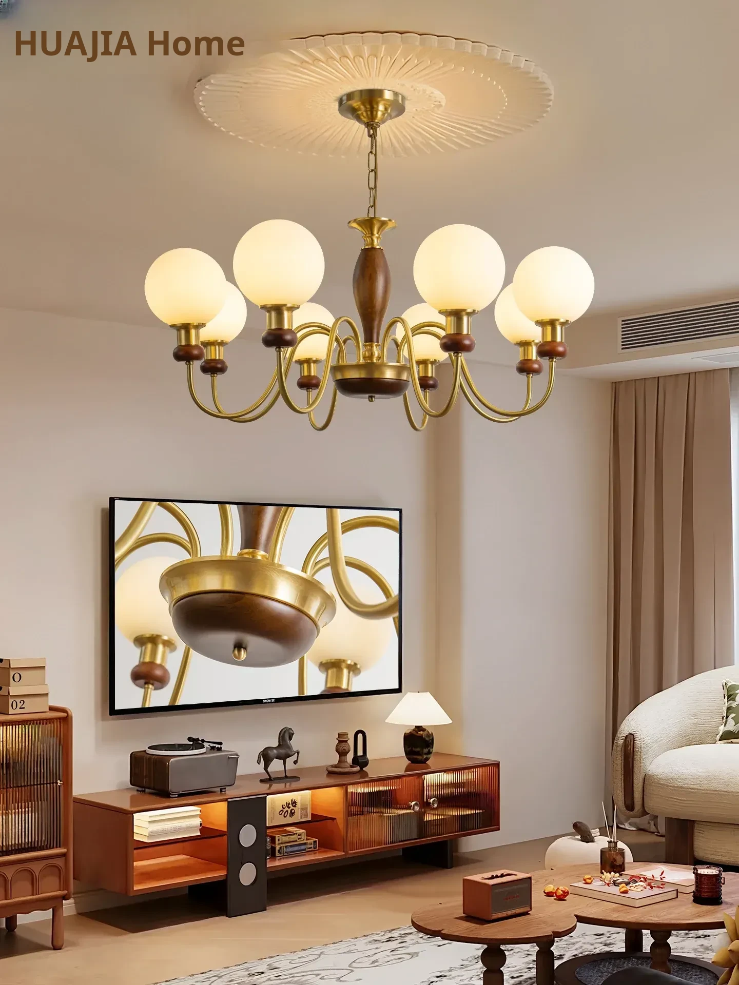 French Vintage Style Chandelier - American Retro Walnut Wood Bauhaus Design Glass Pendant Light for Living Room, Bedroom, and Dining Room