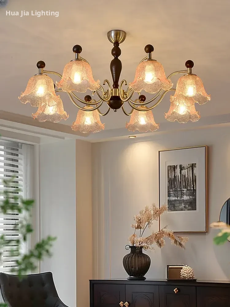 French Vintage Crystal Chandelier - Elegant Atmosphere Lighting for Dining Rooms, Rustic American-style Wooden Chandeliers for Bedrooms and Studies - Perfect Blend of Classic Charm and Modern Aesthetics