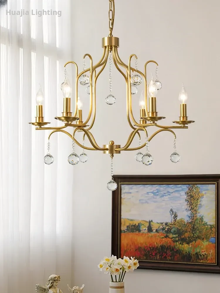 French Vintage Chandelier for Villas and Duplexes - Elegant Living Room Lighting, Rustic American Style Bedroom Lamps, Crystal Candle Holders for Dining Rooms