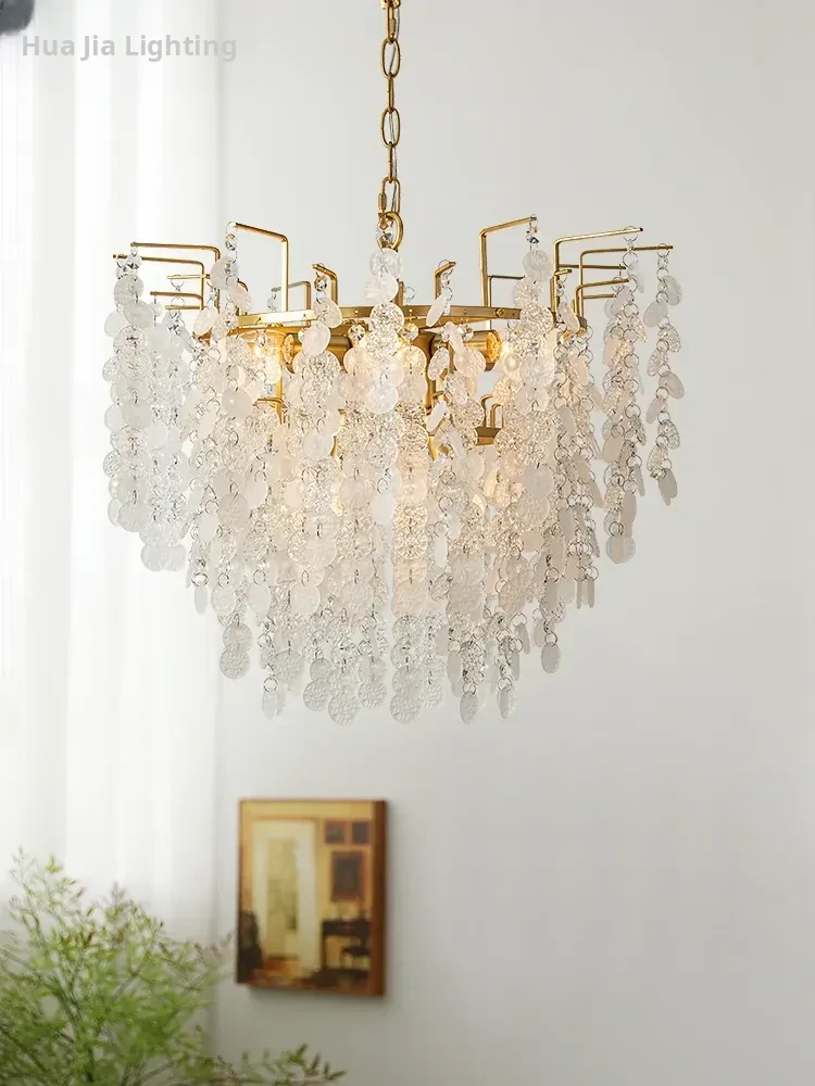 HuaJia American Rustic Chandelier - Creative Shell Design, Minimalist Art Crystal Light for Dining Room, Bedroom, and Living Room Elegance