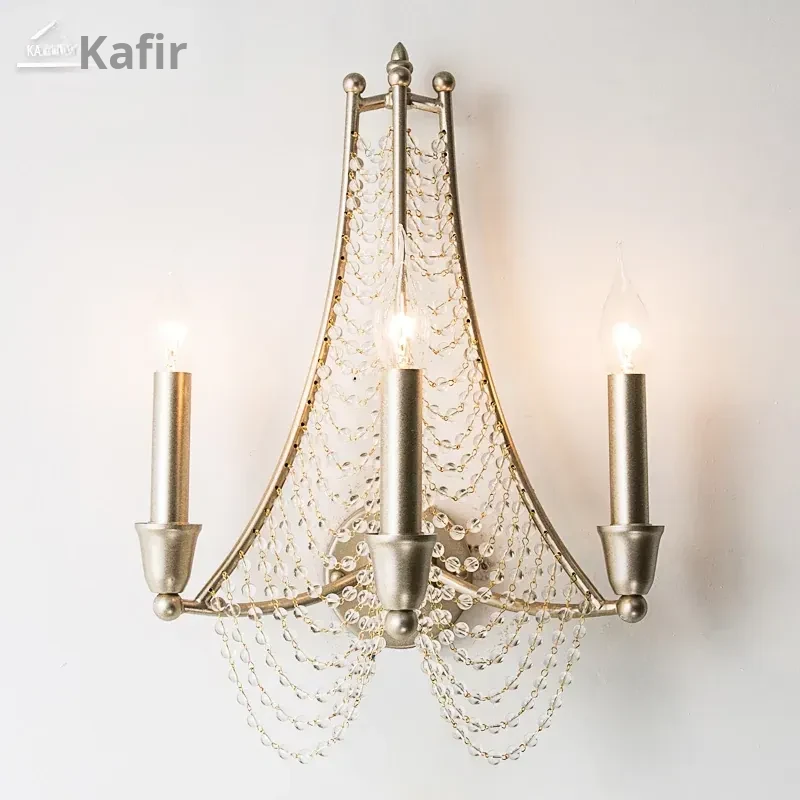 American Country Style Wall Sconce - Vintage Iron and Crystal Bedside Lamp for Bedroom, Creative Villa Decor, Perfect for Living Room Accent Lighting