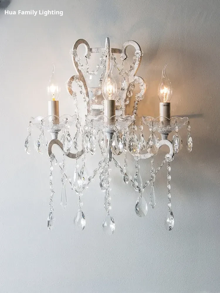 Rustic American Style Wall Sconce - Vintage Minimalist White Iron Crystal Wall Light for Living Room, Hallway, Bedroom, and Bedside Decor