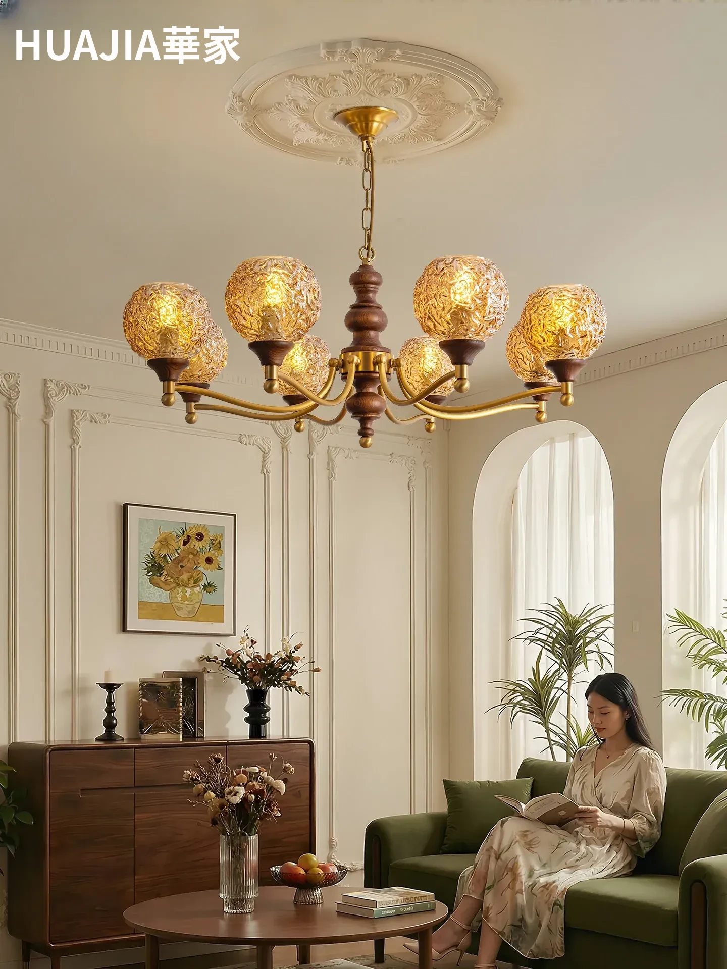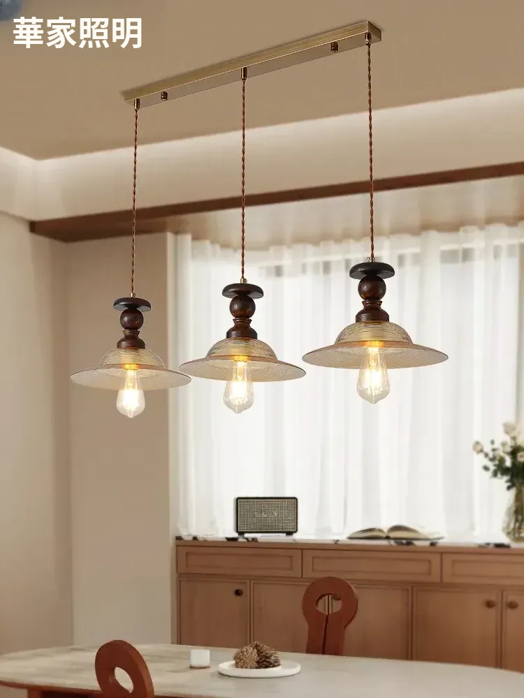 フレンチヴィンテージのレストラン用ペンダントライト!アメリカンスタイルのレトロなベッドサイドライト、無垢材とガラスの高級感溢れるシンプルなバー用照明。あなたの空間に洗練された雰囲気をプラス!