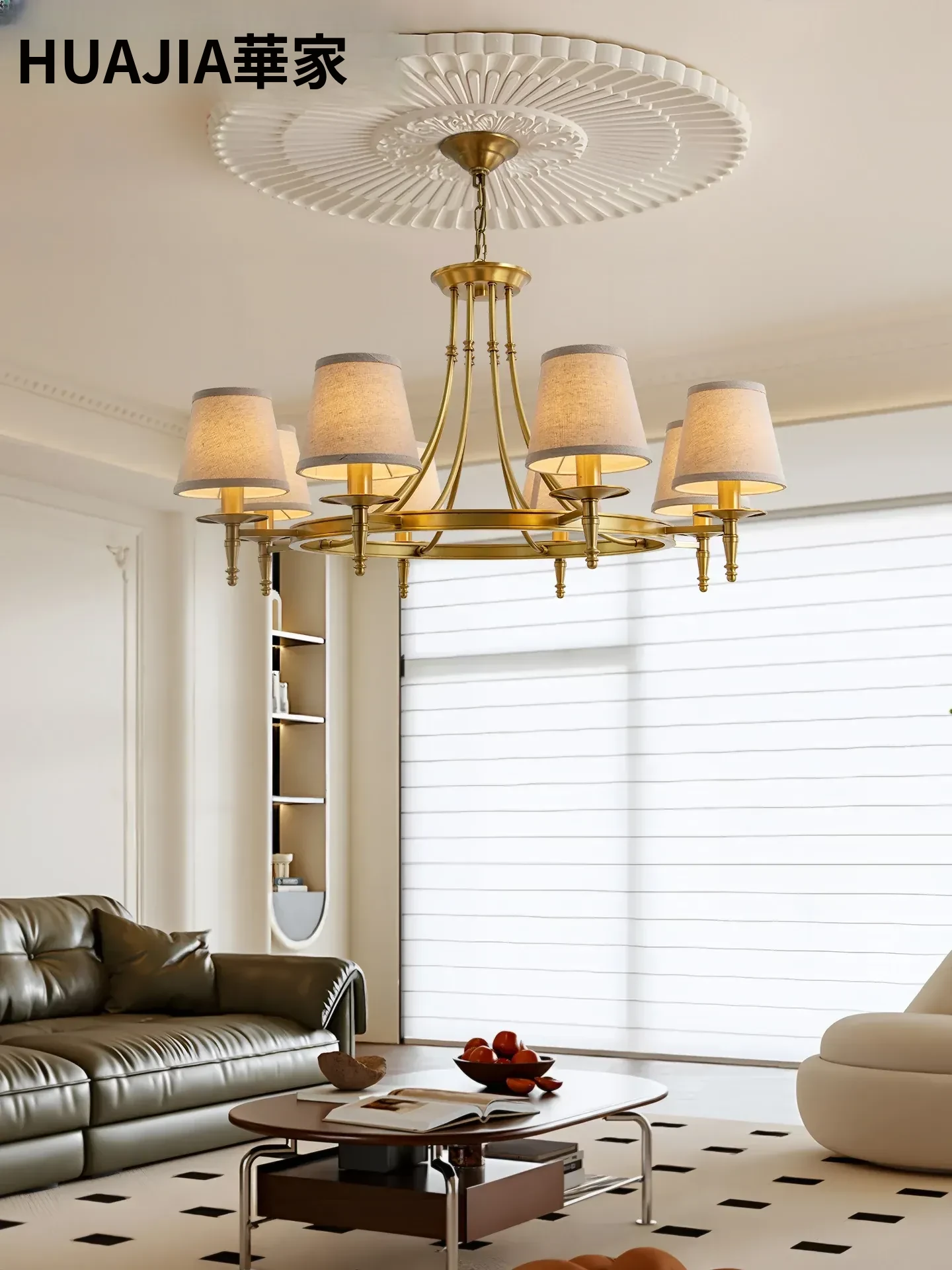 フランス風シャンデリア 中古スタイルのリビングルーム用メインライト 全銅製 レトロな布シェード 大広間用シャンデリア ヴィラにぴったりのシンプルなダイニングルーム用吊り灯