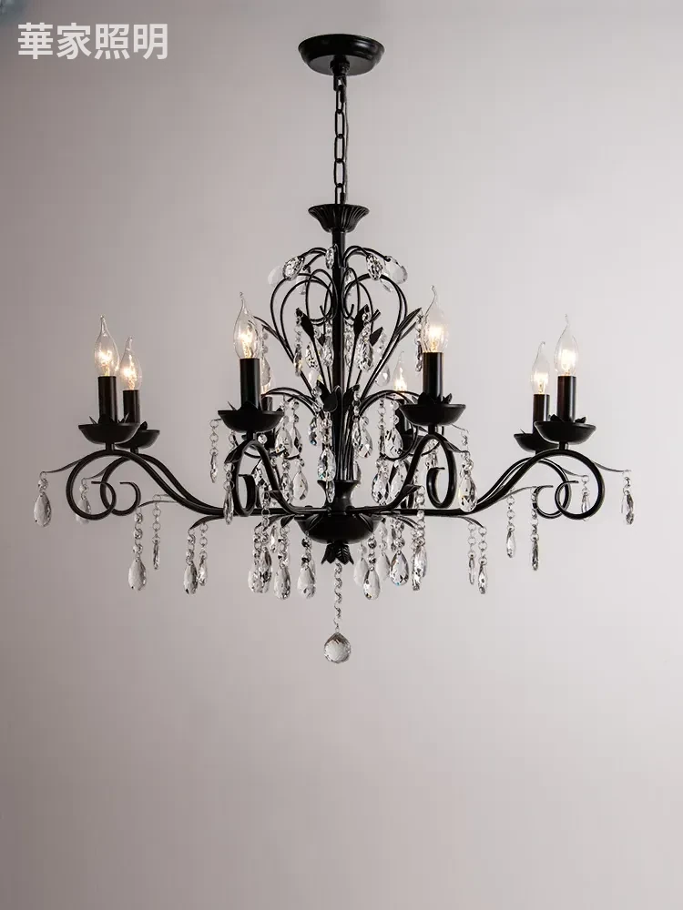 フランス製クリスタルシャンデリア アメリカンビンテージキャンドルスタイル ブラックリビング&ダイニング用 光を美しく演出するアンティーク感漂う高級感あるお部屋の照明